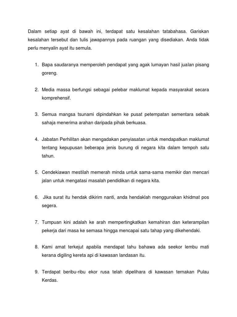 Jawapan Latihan Kesalahan Tatabahasa. Cikgu Tan tolong email jawapan SOALAN TATABAHASA ANALISIS AYAT BERUNSUR KEMAHIRAN BERFIKIR ARAS TINGGI KBAT. Koleksi Soalan Latihan Nota Modul Bahasa Melayu BM Tahun 6 Jawapan.